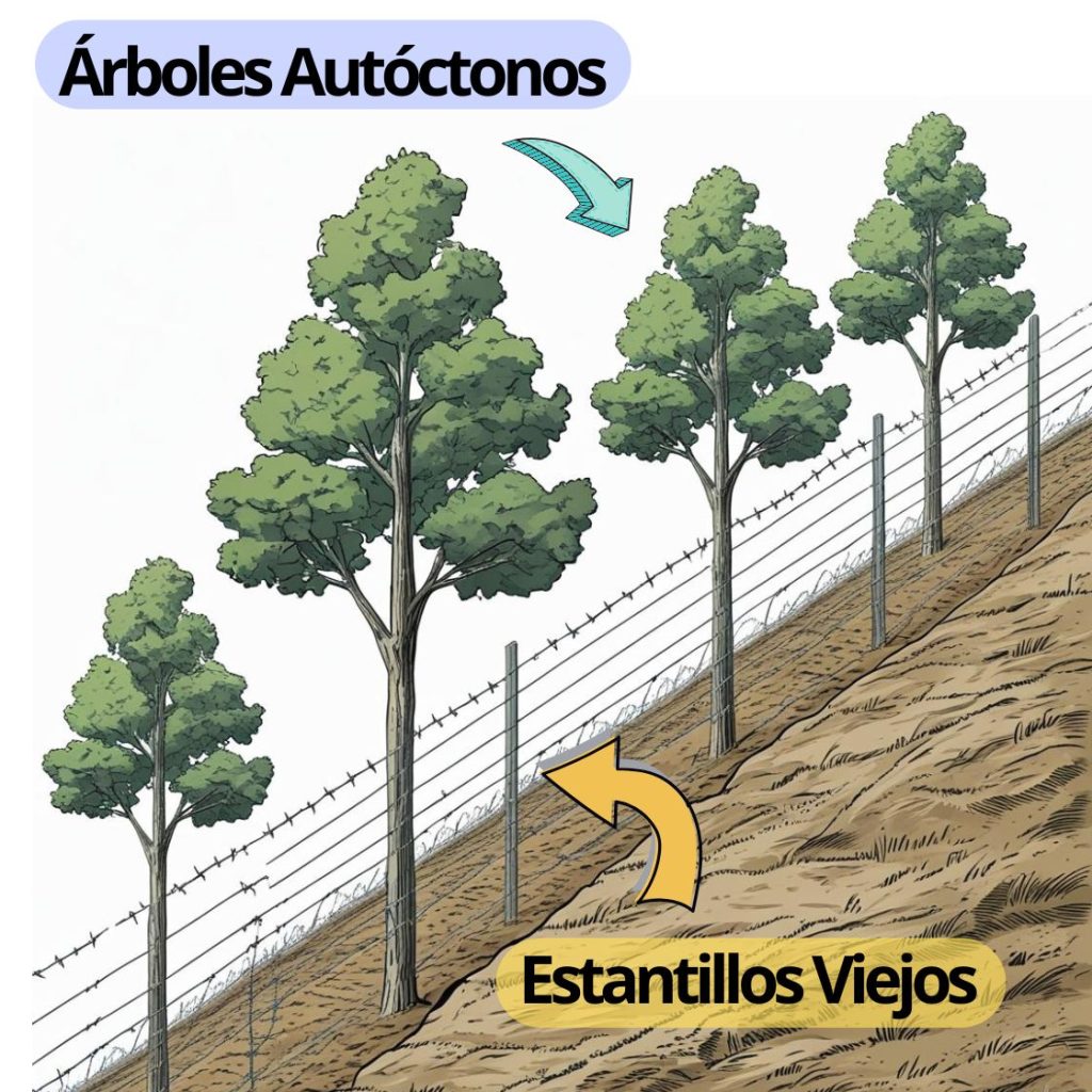 Lo mejor será colectar en el bosque más cercano arbolitos jóvenes y autóctonos para ser replantados en el vivero de su finca para su crecimiento. Estas plantas pequeñas provenientes de la regeneración del bosque son ideales para este propósito. Una vez en sus bolsas tomarán un tamaño adecuado antes de ser llevado a los linderos y colocados al lado del estantillo que sustituirán con el tiempo. Es un proceso que requiere paciencia y dedicación.